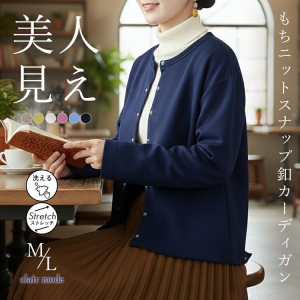 【送料無料/再入荷】 ダンボールニットカーディガン 6色 M L 洗える 長袖 レディース トップス カーディガン クルーネック 体型カバー ドット釦 楽ちん 春秋冬