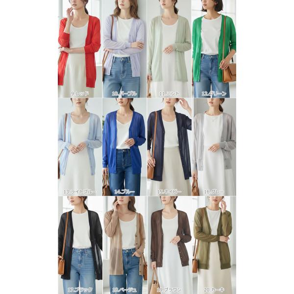 ロングカーディガン レディース 春 薄手 uv 夏 長袖 七分袖 オフィス サマー シアー 透ける 黒