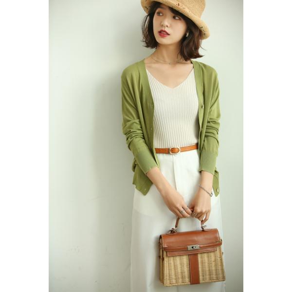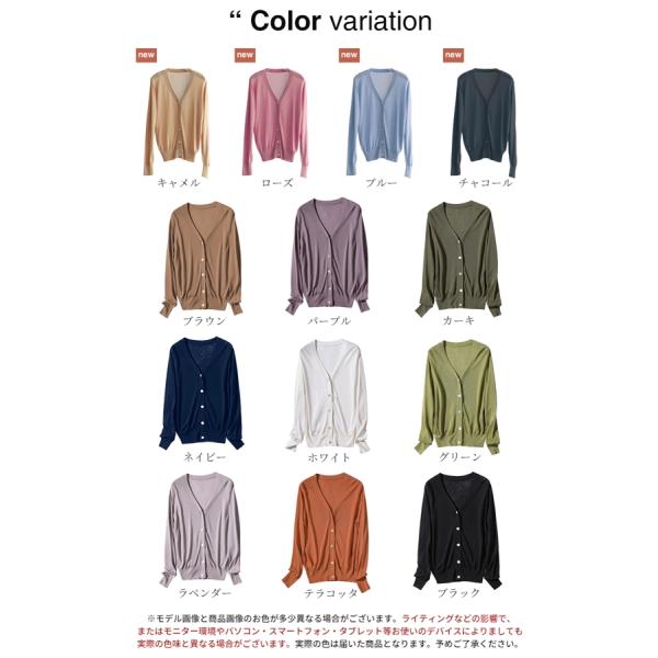 カーディガン 春 夏 秋 サマーニット レディース ニット トップス シェルボタン Vネック 紫外線対策 長袖 薄手 カジュアル 体型カバー 細見え