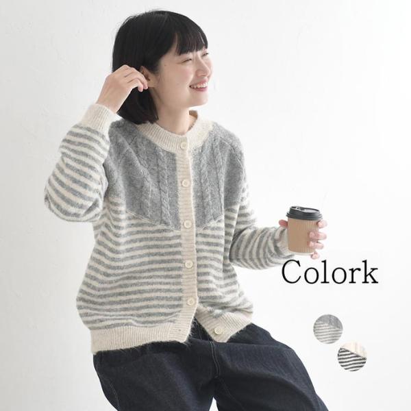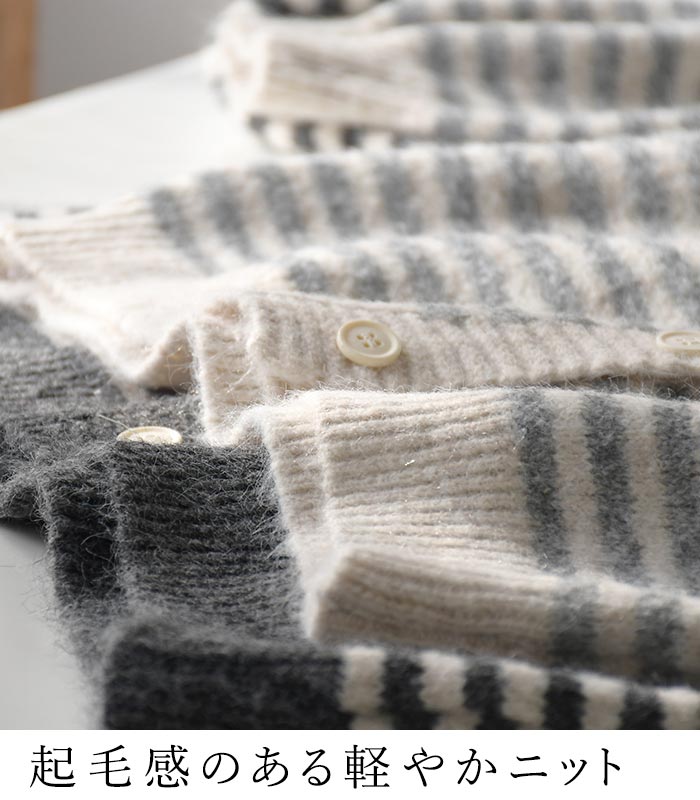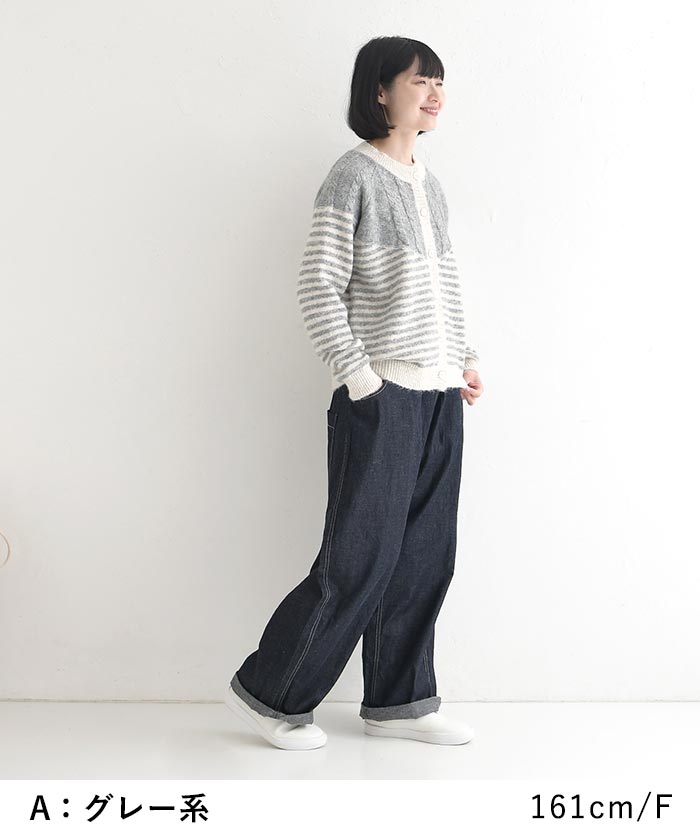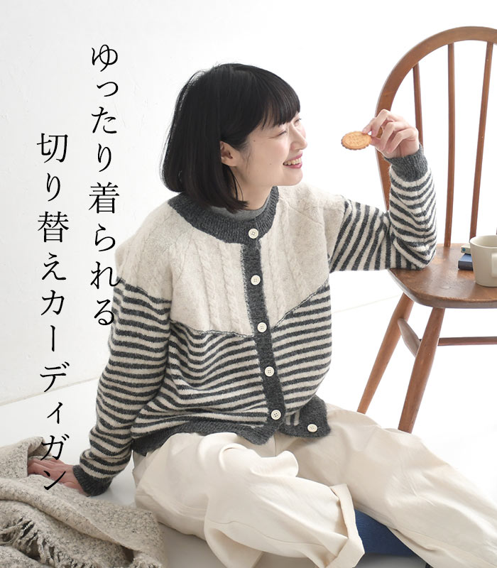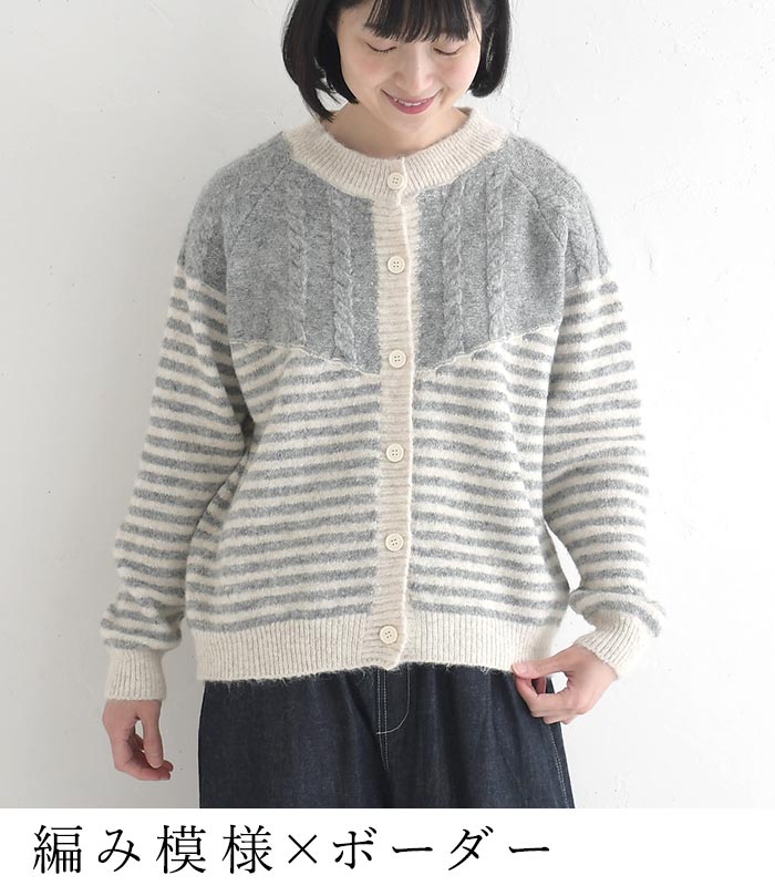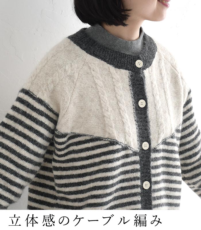 カーディガン レディース ニット ケーブル編み ボーダー 配色 30代 40代 50代 秋冬 25AW1219,