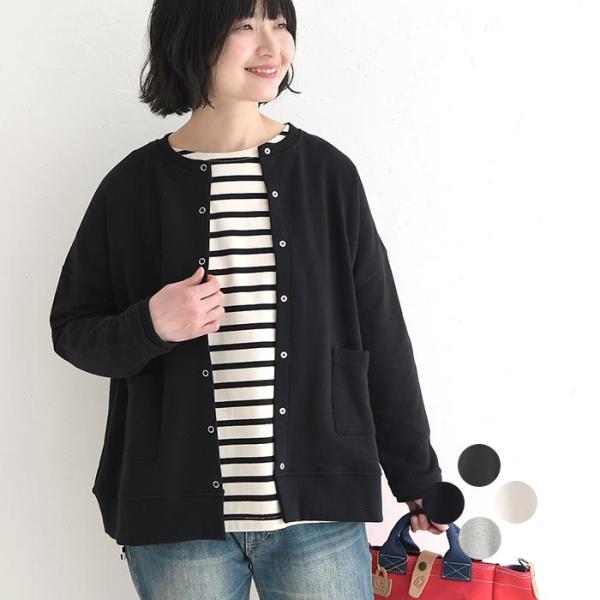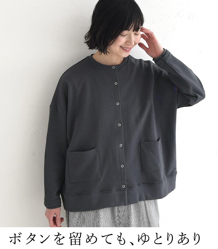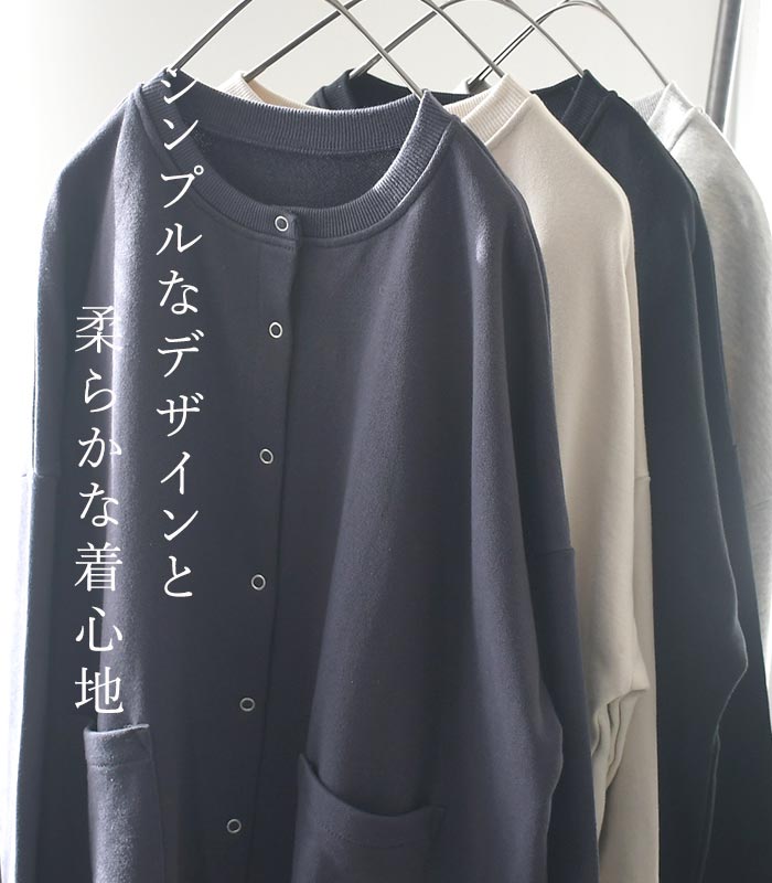 カーディガン レディース ワイド クルーネック 裏毛 綿100% 羽織り30代 40代 50代 春 秋 26SS0204,