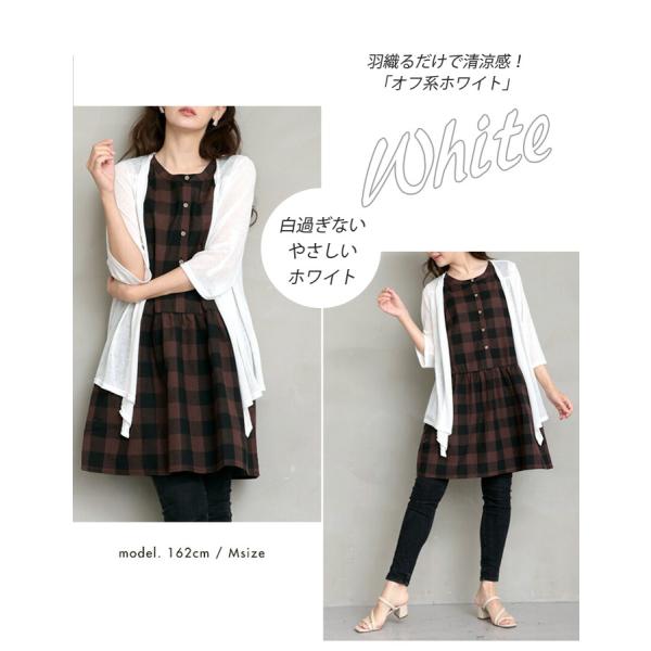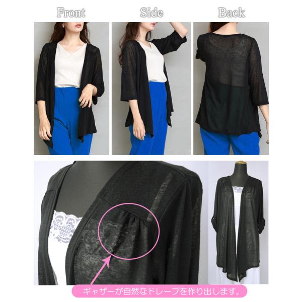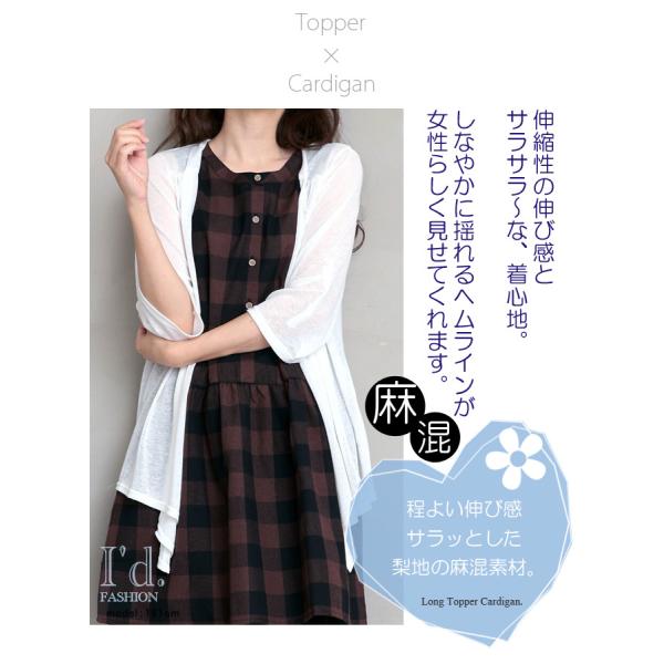 麻混 2WAY 七分袖 伸縮性 夏 トッパー サマーカーディガン 身幅ゆったり リネン 薄手 無地 五分袖 春夏 レディース アウター 大きいサイズ M L LL 3L 3664