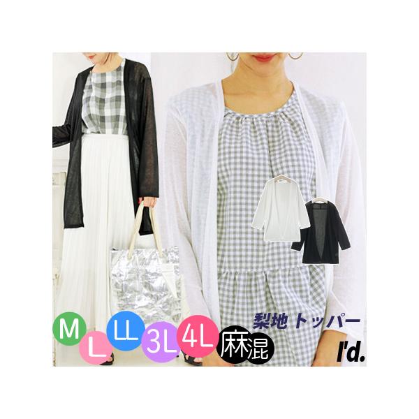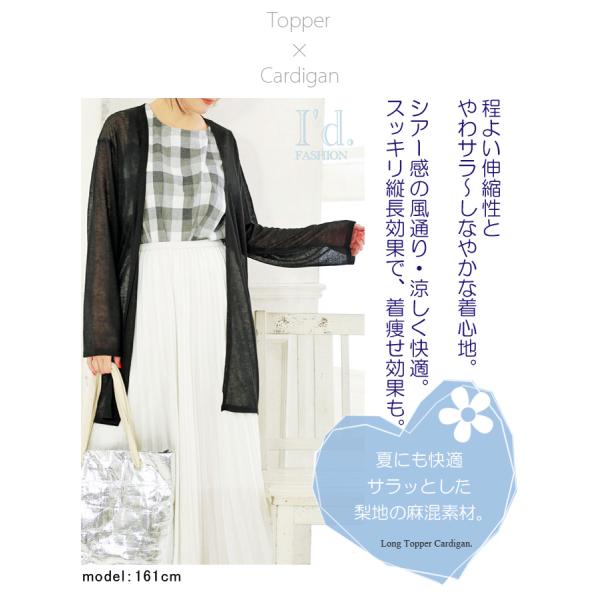 麻混 サマー トッパー 夏 サマーカーディガン ゆったり リネン ミディ シアー 薄手 無地 長袖 春夏 レディース ロング 大きいサイズ M L LL 3L 4L 3693
