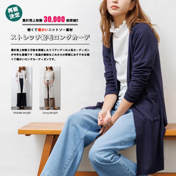 レディース カーディガン ストレッチ起毛ロング トップス アウター ニット 長袖 (ネコポス) 単品購入のみメ ール便送料無料 ポイント消化