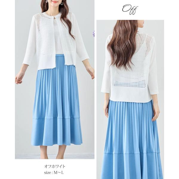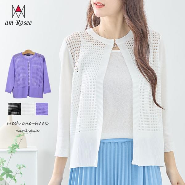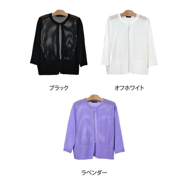 【メール便送料無料】メッシュ編みワンホックカーディガン◆レディース カーディガン 7分袖 シアー 羽織 アウター 丸首 キレイめ 春 夏 メッシュ編み