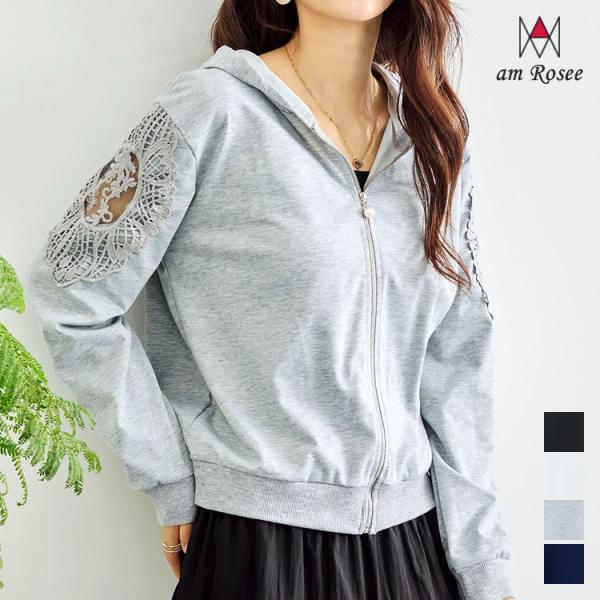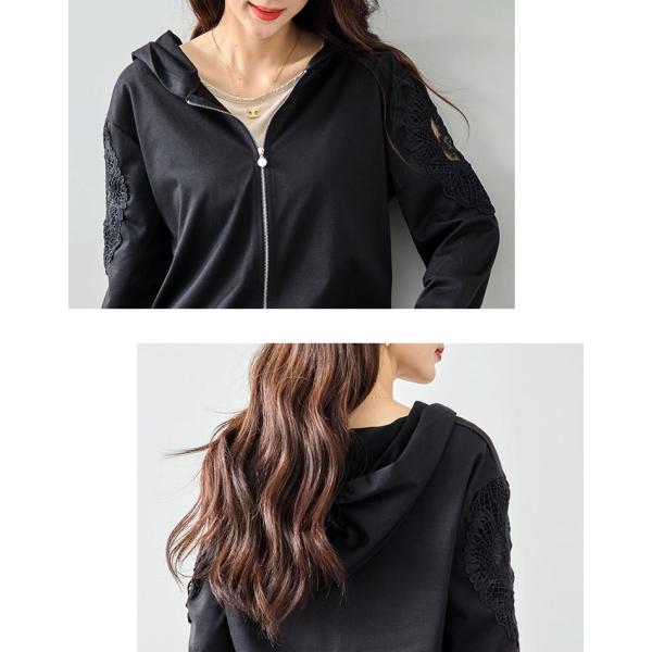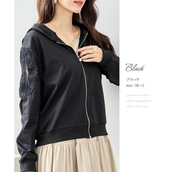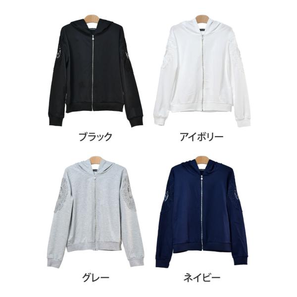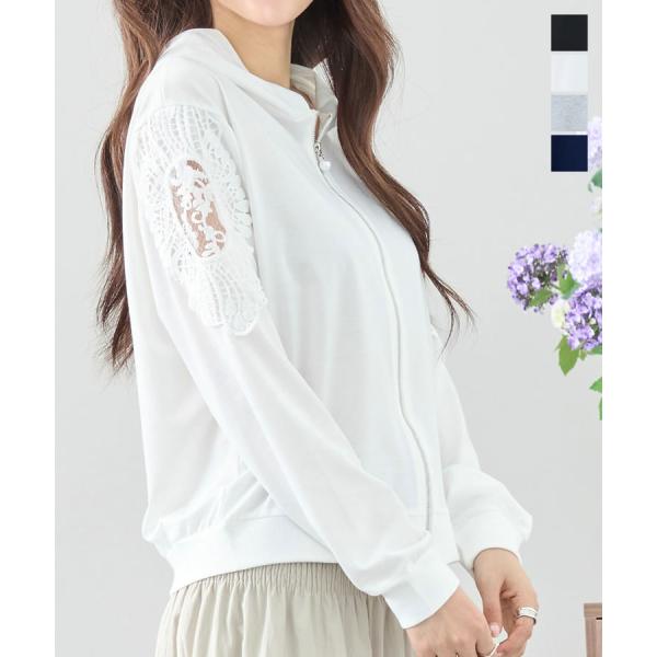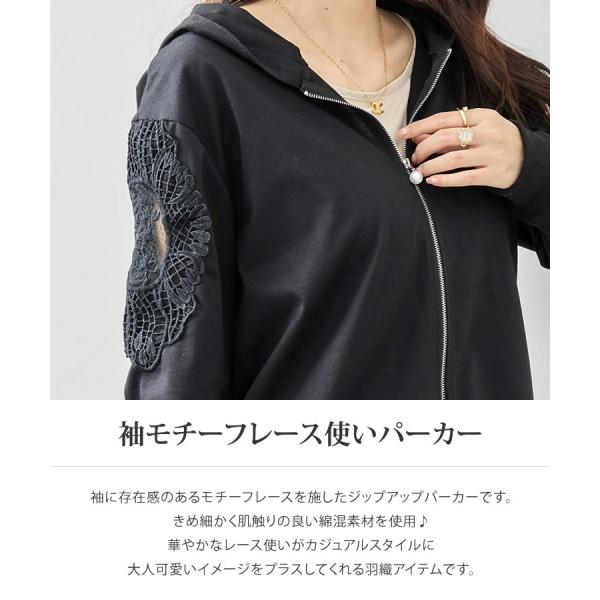 【メール便送料無料】袖モチーフレース使いパーカー◆レディース カーディガン パーカー 長袖 レース フード付き 羽織 アウター キレイめ 春 夏 ジップアップ