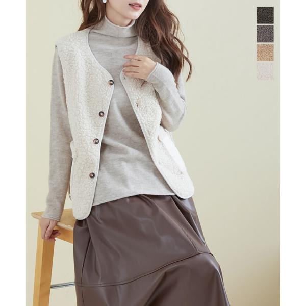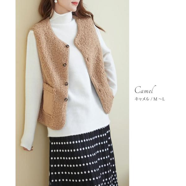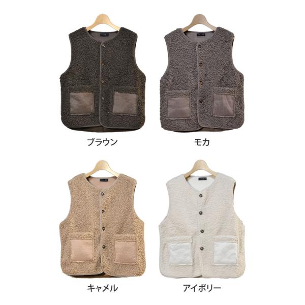 ノーカラーボアベスト◆レディース ベスト ボア ふわふわ 羽織 アウター 前開き ノーカラー 秋 冬 春 フェイクスエード 防寒 大人