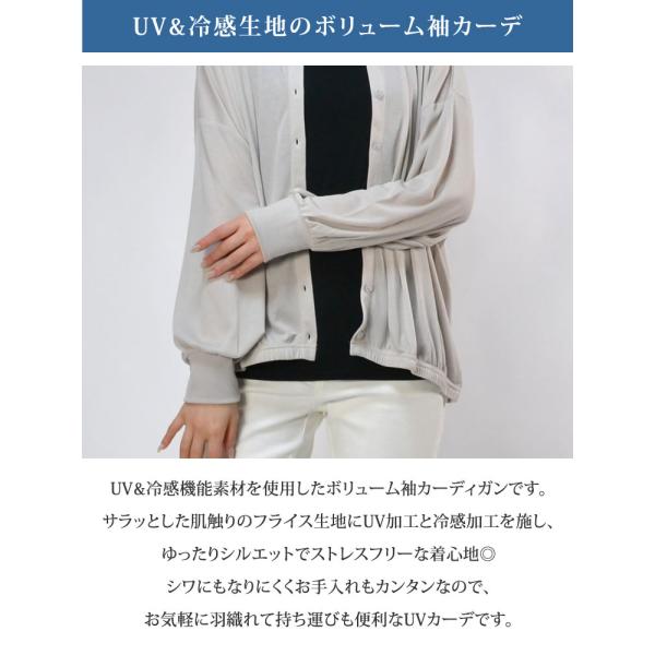 【送料無料】UVクールボリューム袖カーディガン レディース カーディガン クルーネック 長袖 紫外線対策 UVカット 羽織 アウター 冷感