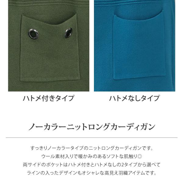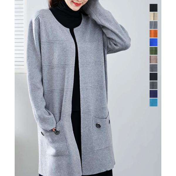 レディース ロング カーディガン ニット ノーカラー アウター ウール クルーネック 丸首 羽織 リブ編み ノーカラー 防寒 春 秋 冬 前開き ポケット