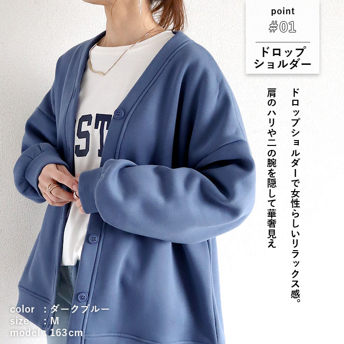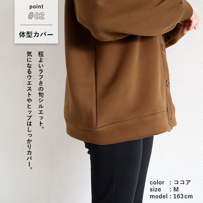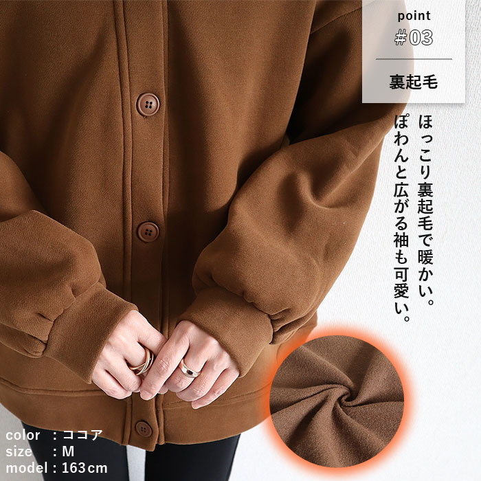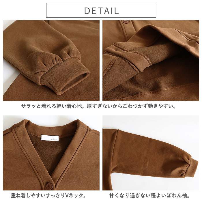 1743円 3点購入クーポンで! カーディガン スウェット アウター トップス レディース ネック 春 秋 冬 黒 おしゃれ 羽織り アウター 長袖 裏起毛 [郵3]^v182^