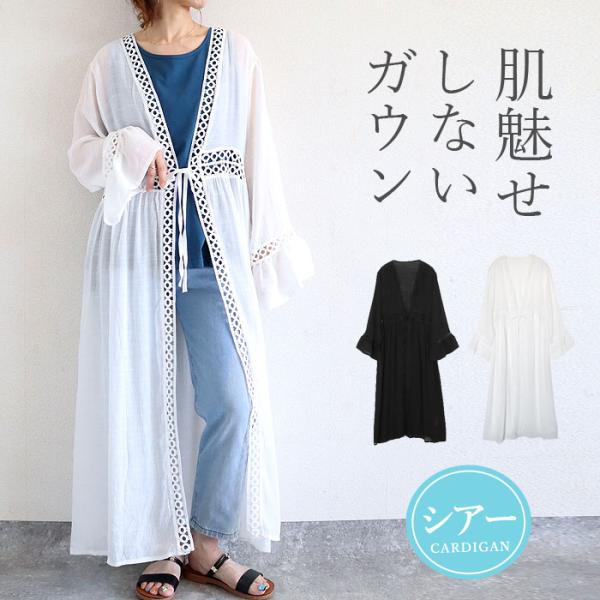 トップス レディース カーディガン 長袖 春 夏 白 黒 おしゃれ かわいい 30代 40代 50代 ガウン風 UVカット [郵3]^v189^