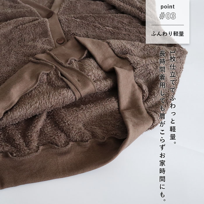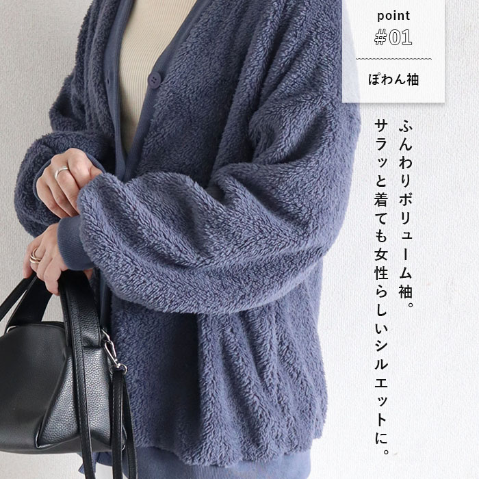 1813円 3点購入クーポンで! カーディガン トップス アウター レディース ボア 秋 冬 白 黒 おしゃれ 長袖 あったか ぽわん袖 体型カバー 羽織り [郵3]^v194^