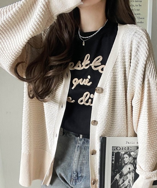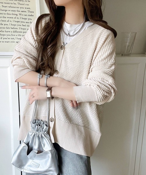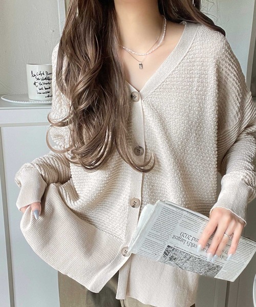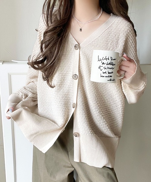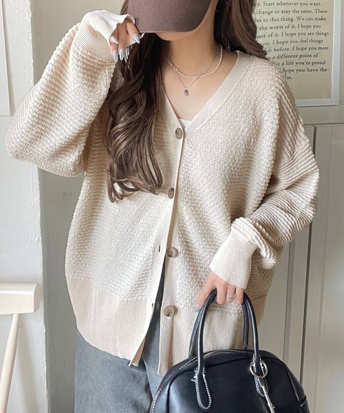 カーディガン ゆるっと羽織って、即こなれ見え。表面変化ブークレニットカーディガン レディース