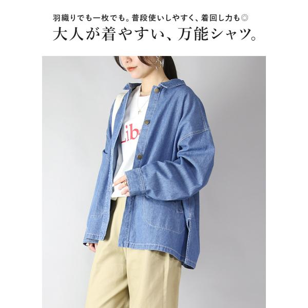 デニムジャケット レディース 綿 ライトデニム 薄手 シャツ 長袖 羽織り アウター トップス コットン 春 夏 秋 体型カバー セットアップ おしゃれ