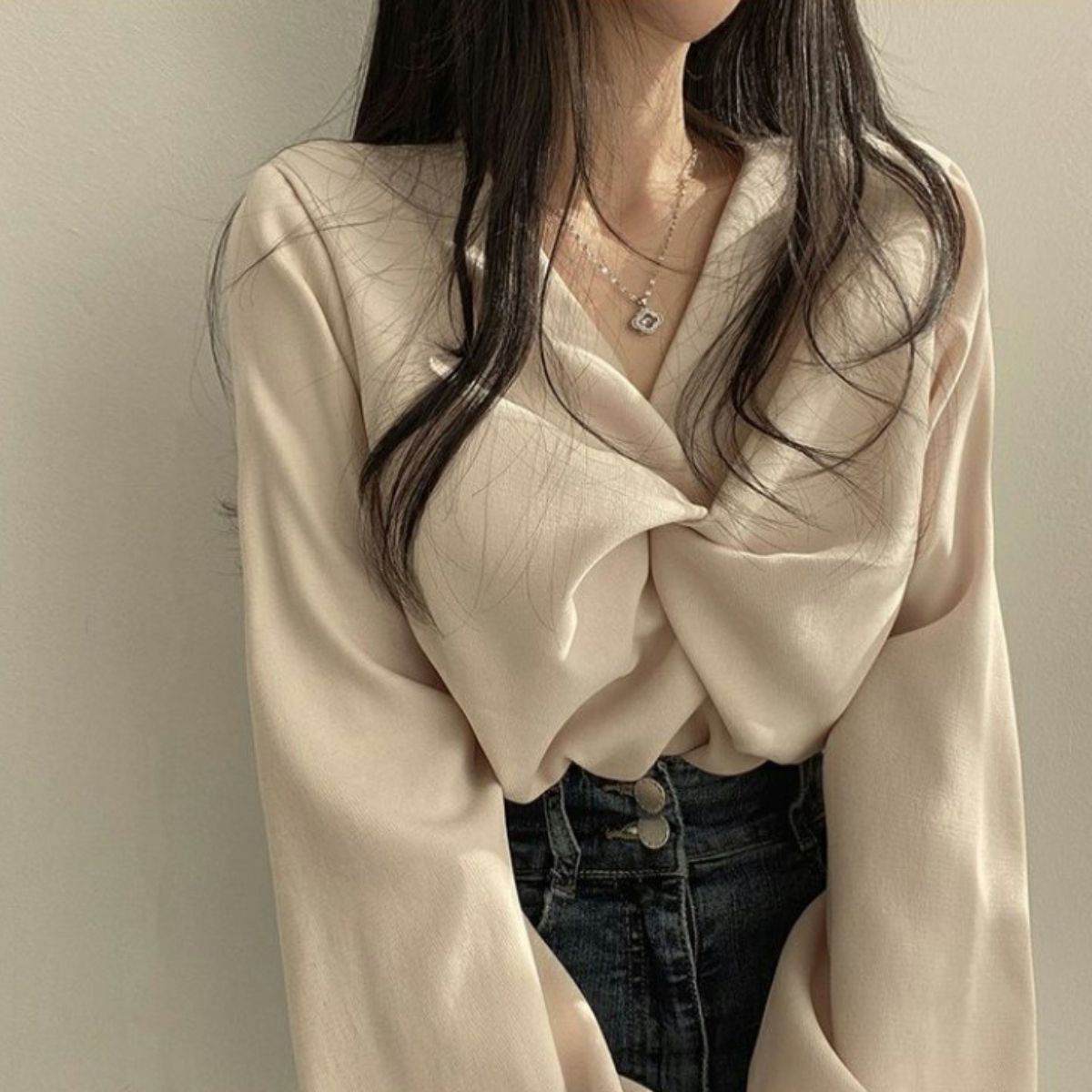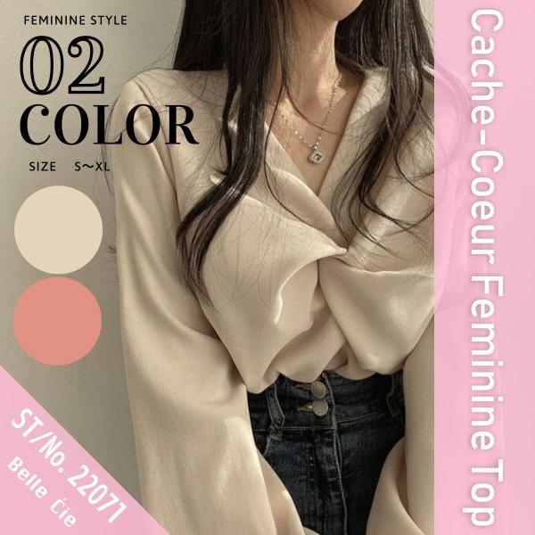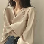 トップス ブラウス カシュクール Vネック 長袖 上品 きれいめ レディース 韓国ファッション シンプル フェミニン 発表会 入学式 オフィス 春