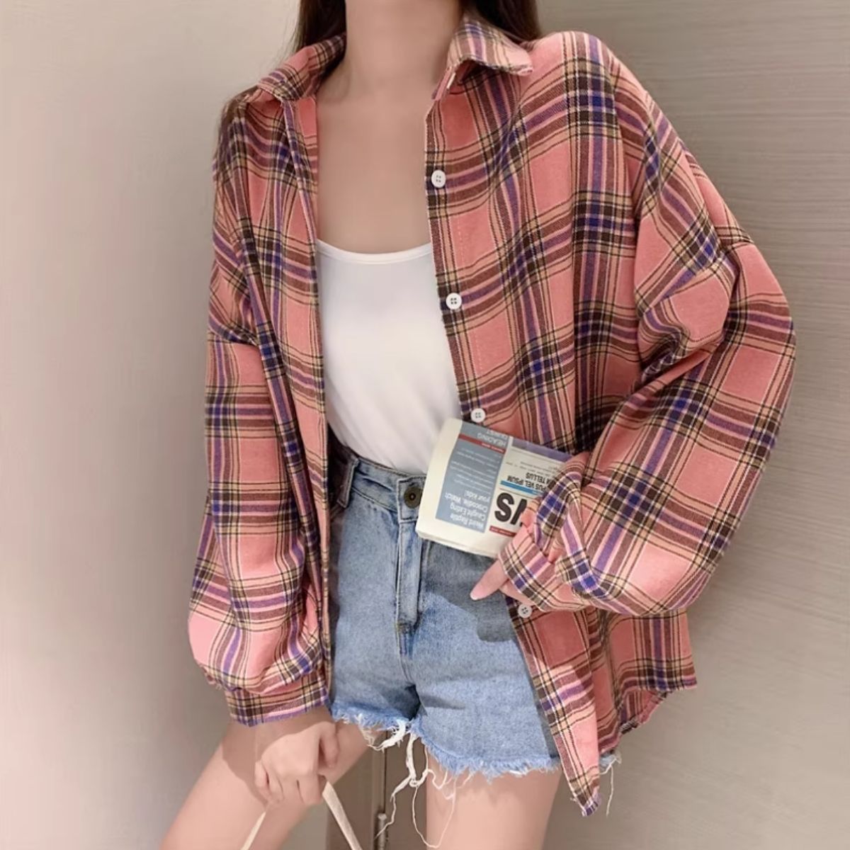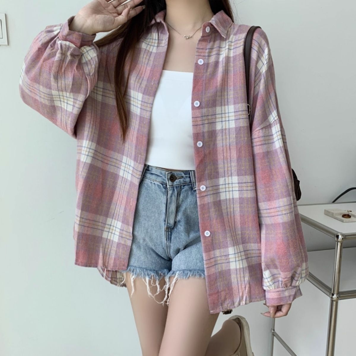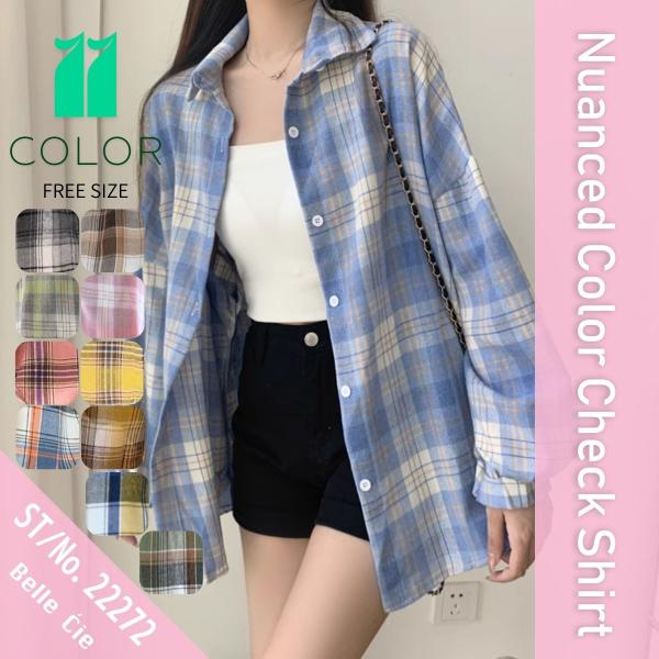 シャツ トップス 羽織り チェック 長袖 重ね着 ナチュラル 秋冬 レディース 韓国ファッション ゆったり カジュアルシャツ ニュアンスカラー 柄