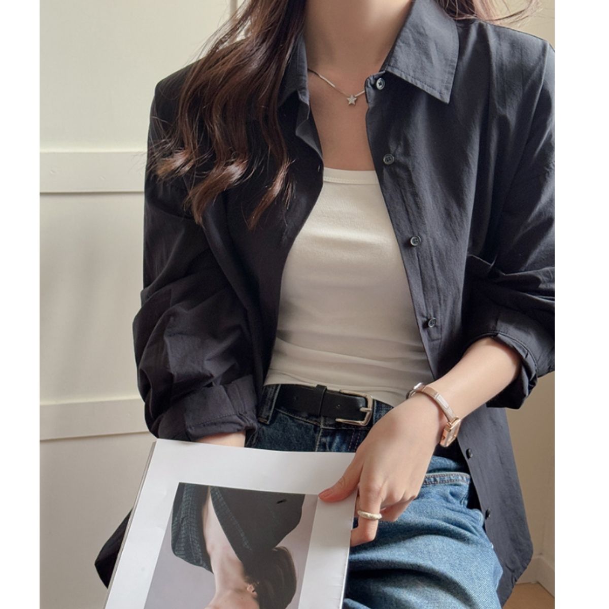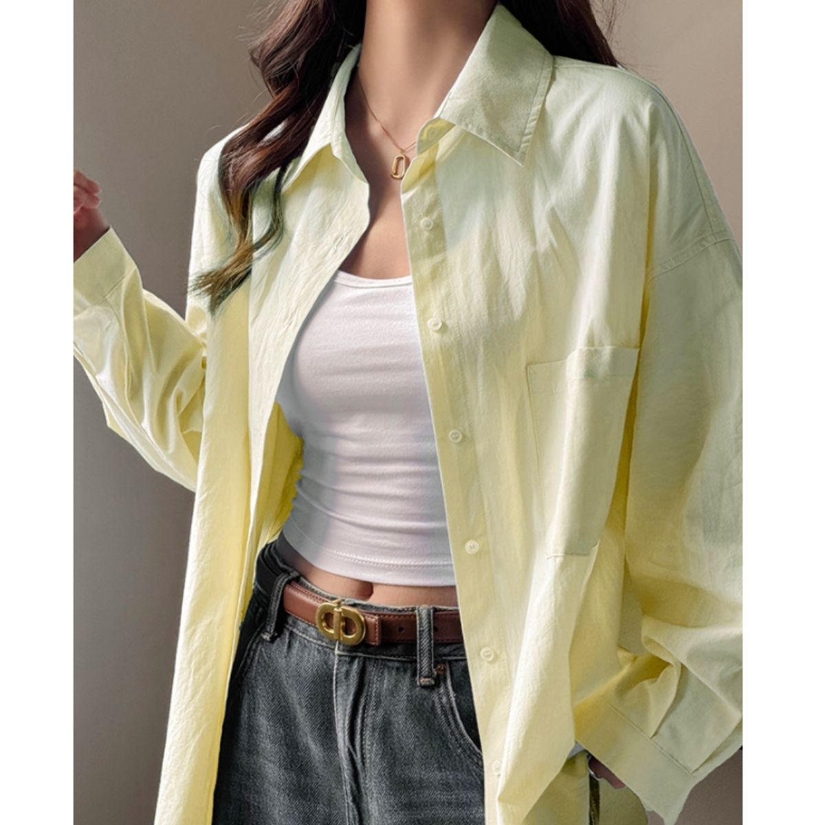 シャツ 羽織り オーバーシャツ レイヤード 長袖 シンプル カラー レディース 韓国ファッション きれいめ ゆったり 体型カバー 大きいサイズ 無地