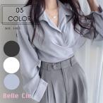 シャツ ショート ブラウス カシュクール バックリボン きれいめ レディース 韓国ファッション トップス ウエストマーク 大人 フェミニンオフィス