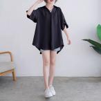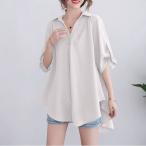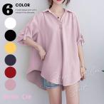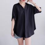 シャツ 半袖 スキッパーシャツ ブラウス フレア トップス レディース きれいめ Vネック 隠れる 韓国ファッション 上品 オフィス かっこいい