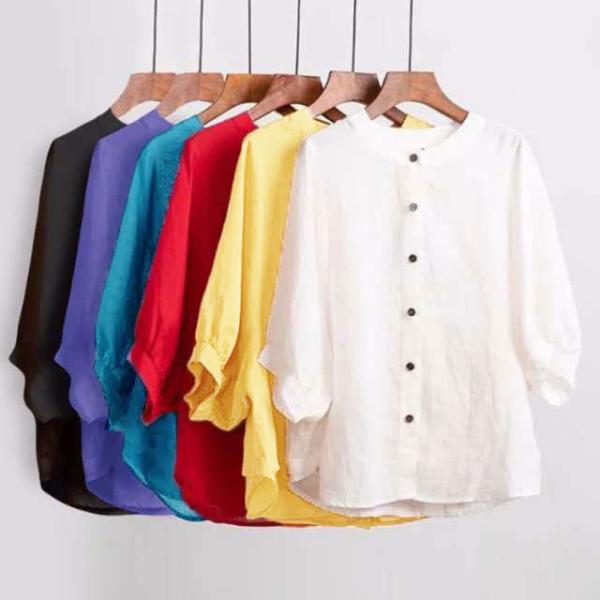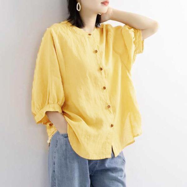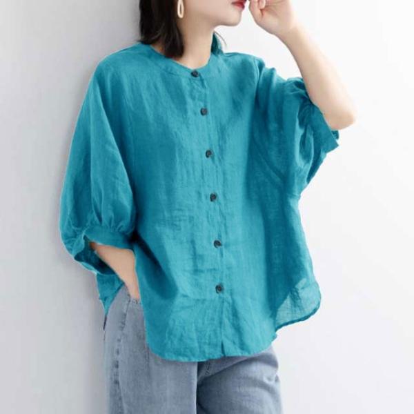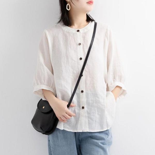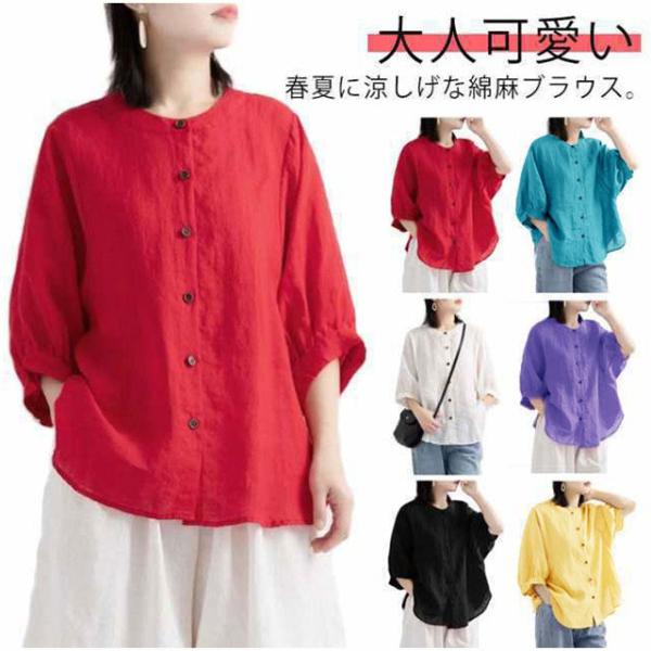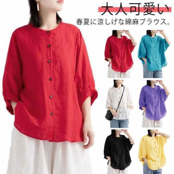 綿麻 夏 レディース 薄手 丸襟 半袖 シャツブラウス 春 大きいサイズ コットンリネン 無地 コットンリネン ブラウス ゆったり 涼しい ナチュラル