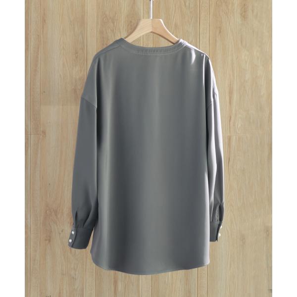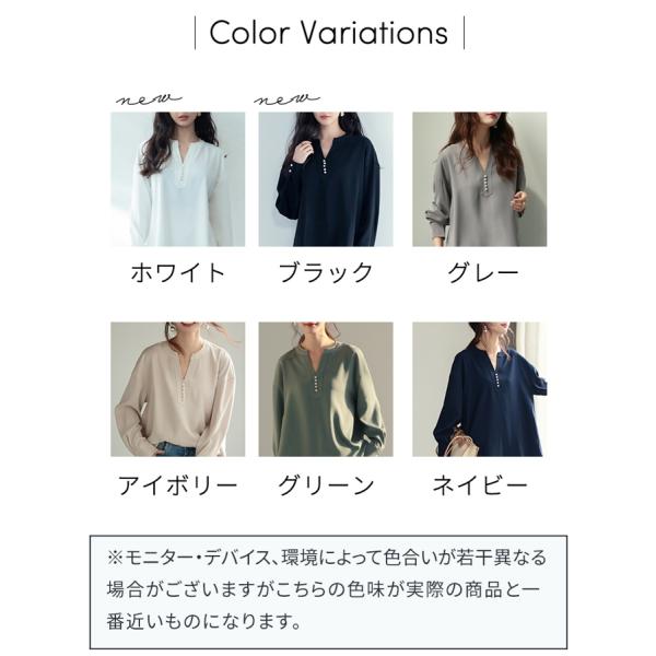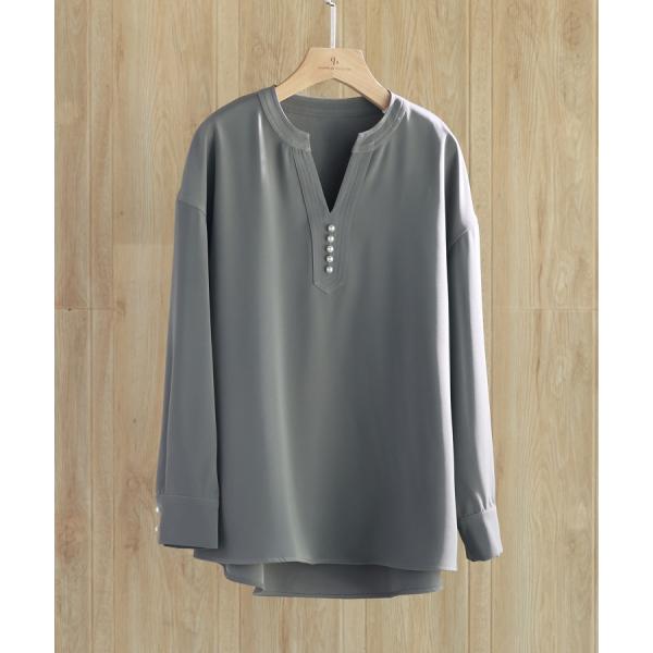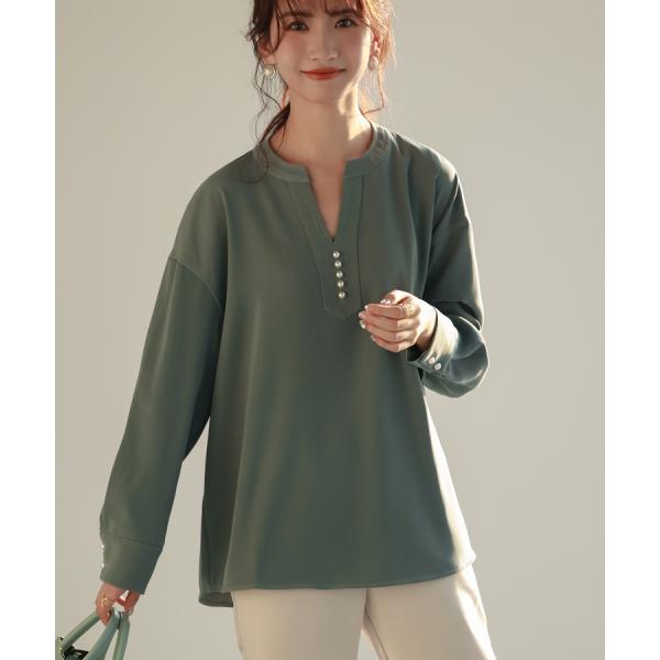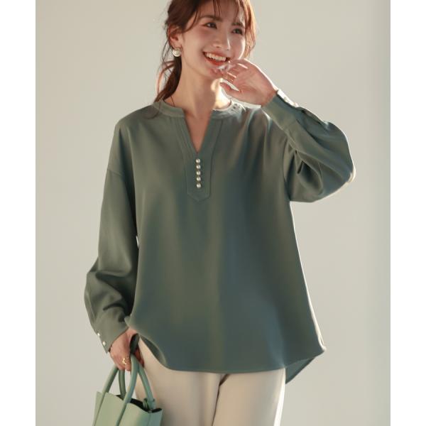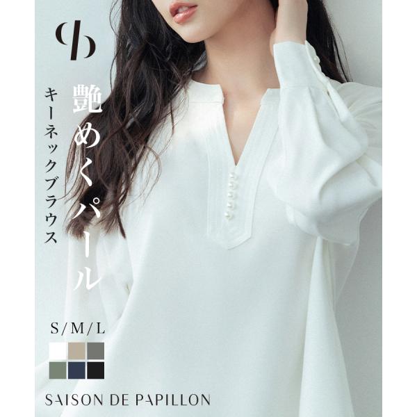 ブラウス 秋 冬 秋冬 春 シャツ 長袖 レディース パール パールボタン プルオーバー トップス スキッパーネック キーネック フェミニン オフィス
