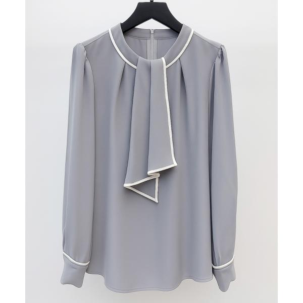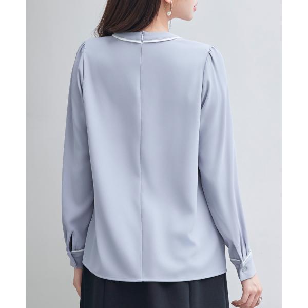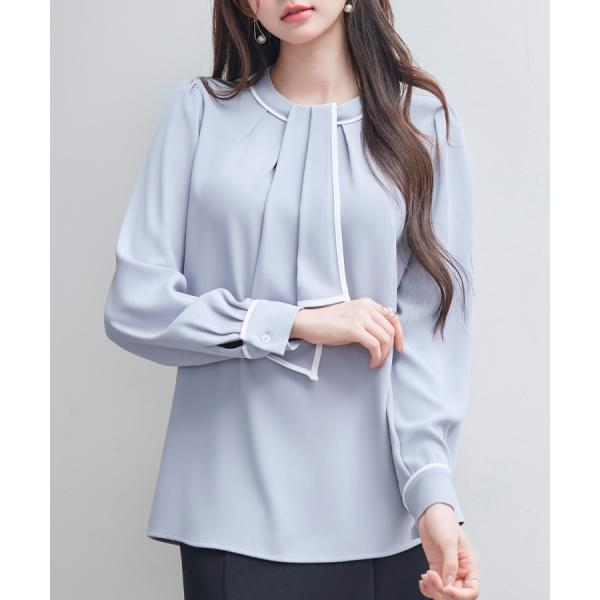 ブラウス レディース トップス プルオーバー フロントタックブラウス ボウタイブラウス 2way モックネック クルーネック 長袖 オフィスカジュアル