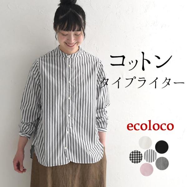 メール便送料無料 シャツ ブラウス レディース 長袖 レディース スタンドカラー タイプライター 綿100% 26SS0227R,