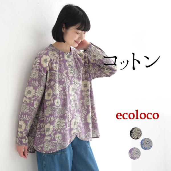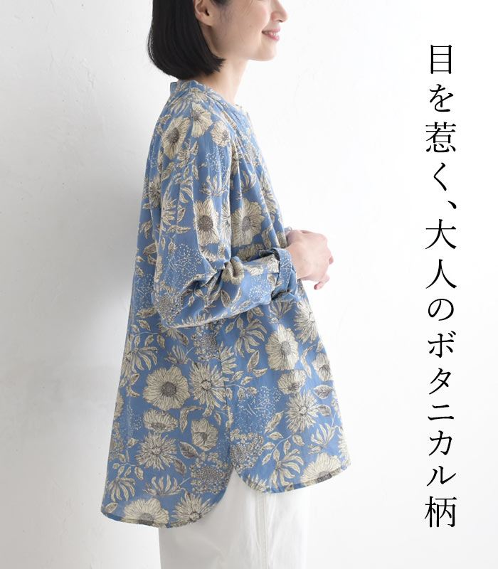 メール便送料無料 ブラウス 長袖 レディース 花柄 ボタニカル フラワープリント 綿100%春夏 大きいサイズ 26SS0403R,