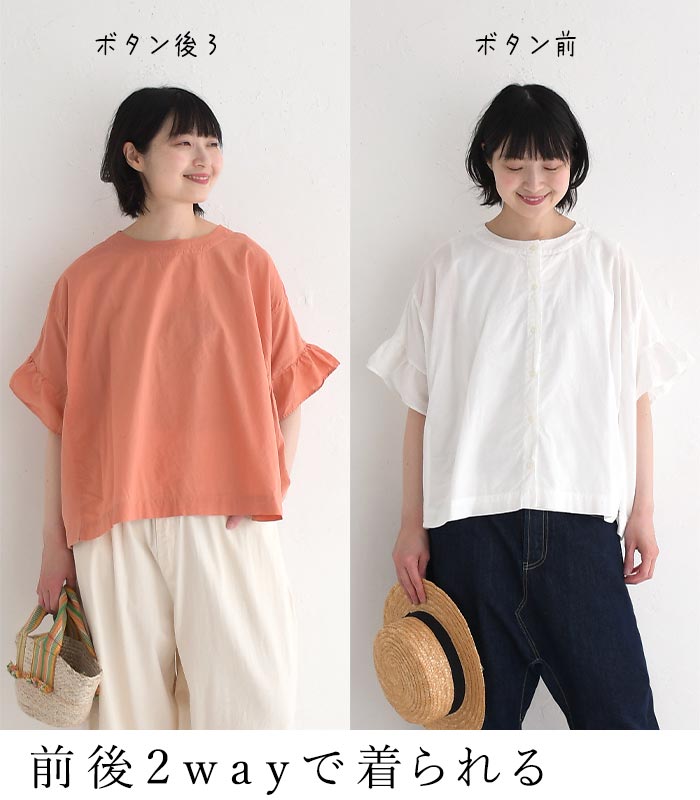 プルオーバー ブラウス レディース 袖フリル SUN VALLEY コットンローン 前後2WAY 綿100% 25SS0530,