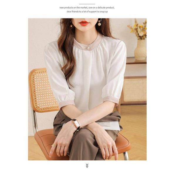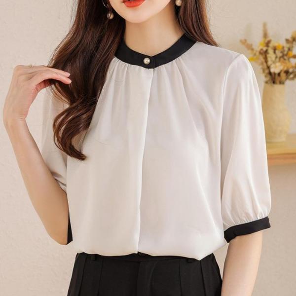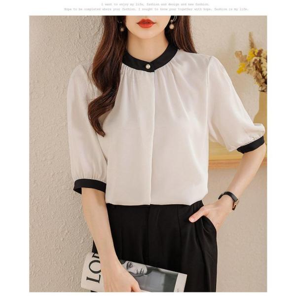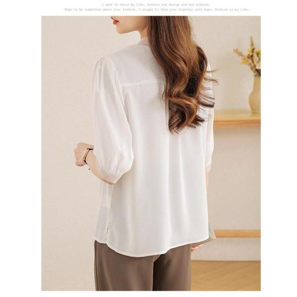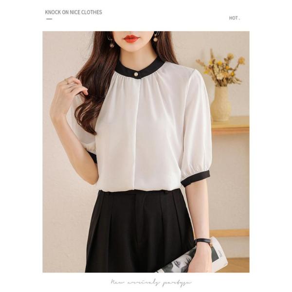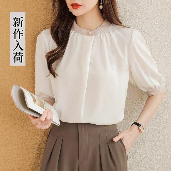 ブラウス 半袖 レディース オフィス 夏 ゆったり シフォン 無地 おしゃれ 大きいサイズ着痩せ 通勤 通学 カジュアル