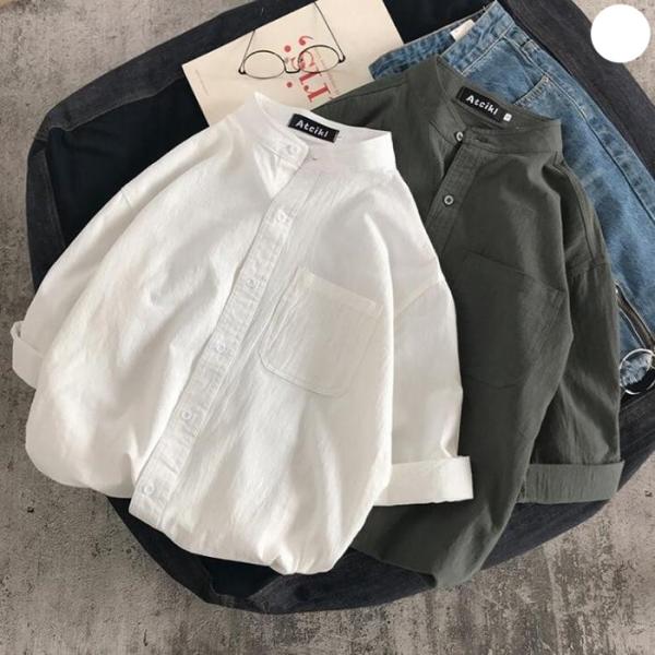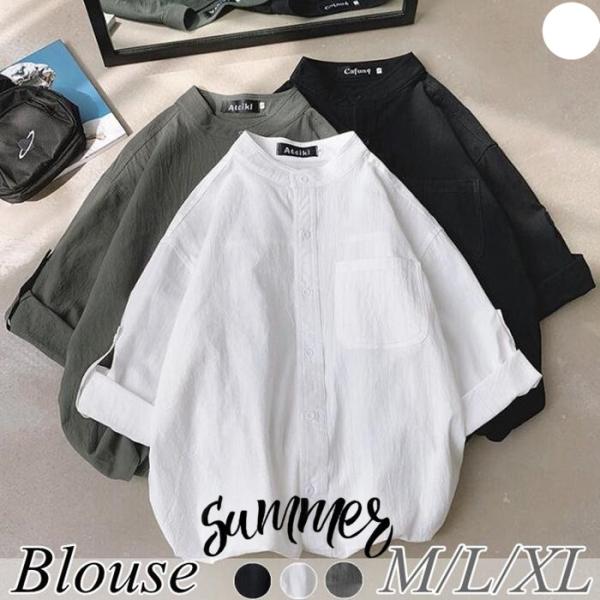 シャツ レディース 春 夏 秋 トップス バンドカラー フォーマル チュニック 七分袖 無地 通勤 OL 着痩せ オシャレ
