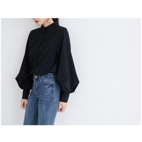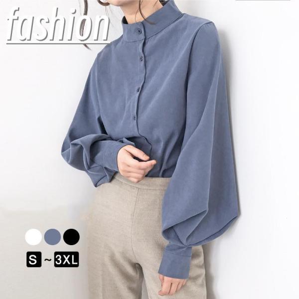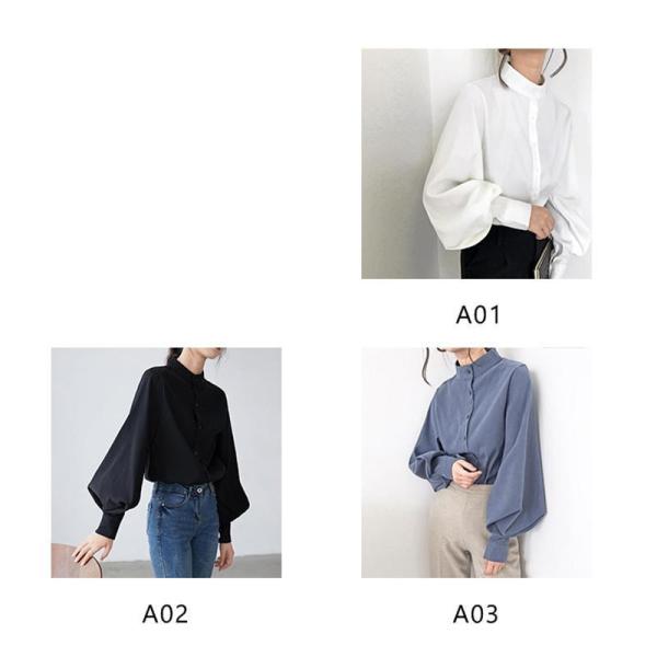 シャツブラウス レディース きれいめ 春夏秋 オシャレ セレモニー シフォン 一部即納 ボリューム袖 長袖 トップス ハイネック 上品 大人 通勤 ゆったり