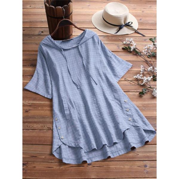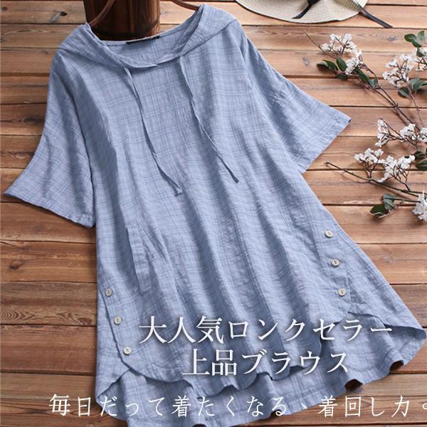 ブラウス トップス チュニック レディース 柄 リネン シャツ 春 夏 ゆったり 体型カバー 無地 フード付き シンプル オーバーサイズ 送料無料