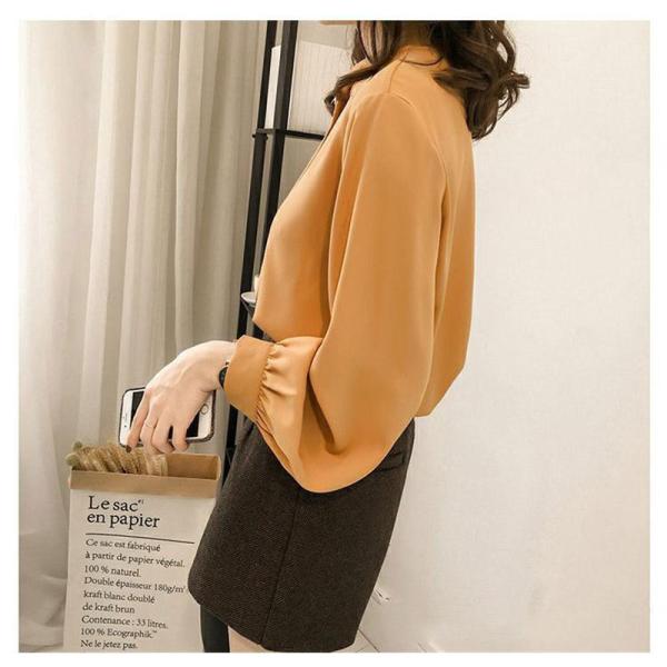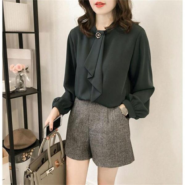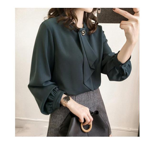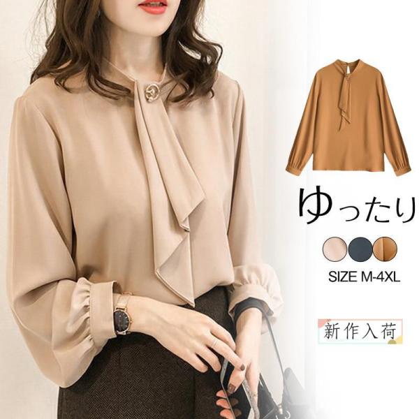ブラウス レディース 長袖 シャツ オフィス リボン付き シフォン パフスリーブ 入学式 通勤 スーツ インナー ゆったり ビジネス 春夏 おしゃれ