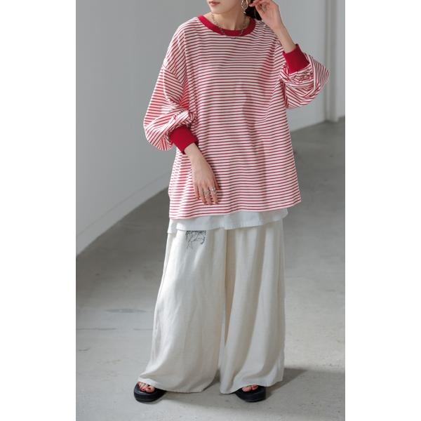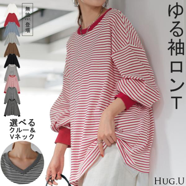 トップス レディース 長袖 Tシャツ カットソー ロング ティーシャツ チュニック ビッグ Vネック クルーネック 長い ドルマン ゆったり 無地 体型カバー