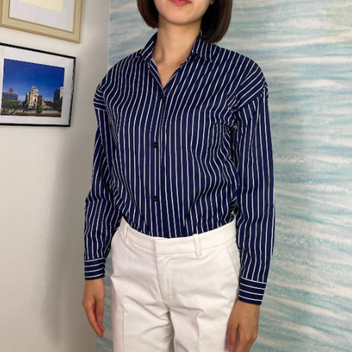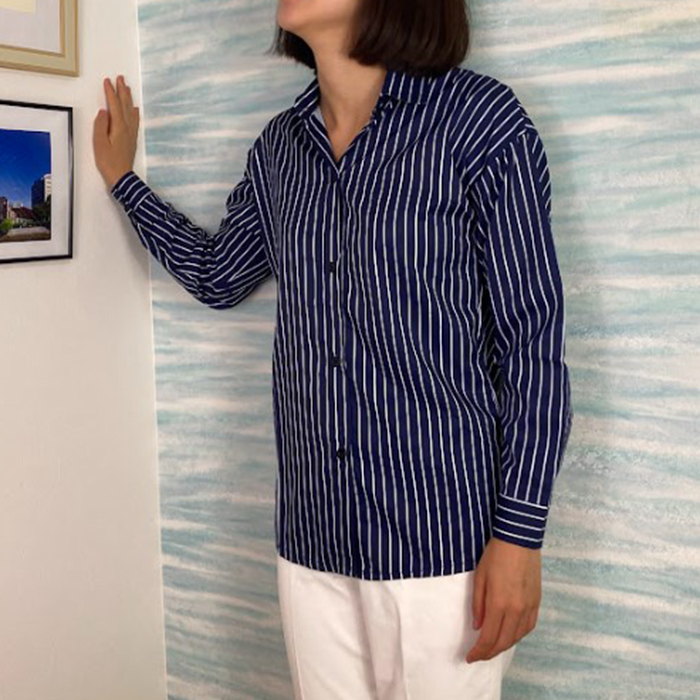 トップス シャツ ブラウス 長袖 レディース ストライプ柄 オーバーシャツ オーバーブラウス 秋 冬 春 ドレープ ゆったり 体型カバー