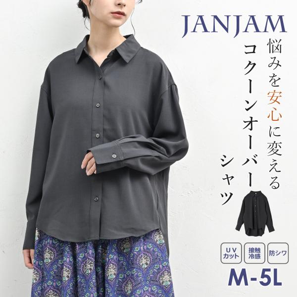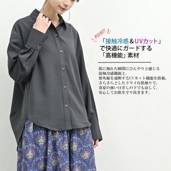 コクーンオーバーシャツ 大きいサイズ レディース メール便送料無料 長袖 前開きボタン UVカット 接触冷感 トップス M LL 3L 4L 5L