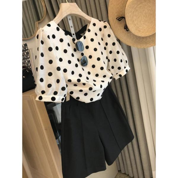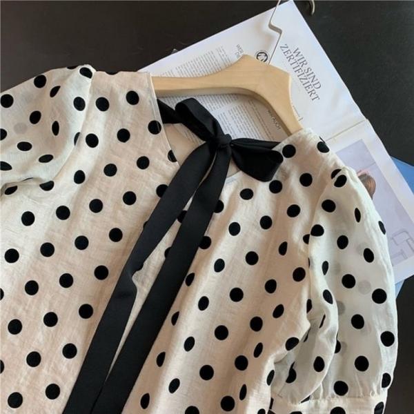 バックリボントップス ドット柄 ブラウス シャツ レディース オフィス 通勤 OL きれいめ 上品 可愛い シンプル おしゃれ【代引き不可】