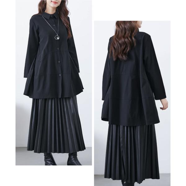 フレアチュニックロングシャツ レディース ロング シャツ ブラウス 長袖 トップス フレア 羽織 コート アウター ジャケット