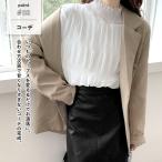 ブラウス レディース 長袖 シフォン シアー シースルー 春 秋 黒 白 おしゃれ かわいい ハイネック ギャザー カットソー レイヤード [郵1.5]^t1082^