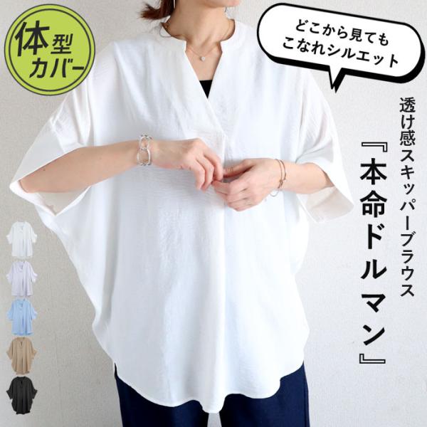 ブラウス キーネック スキッパー シアー トップス レディース 半袖 5分袖 春 夏 黒 白 おしゃれ かわいい 涼しい フロントタック [郵1.5]^t1097^