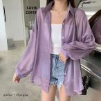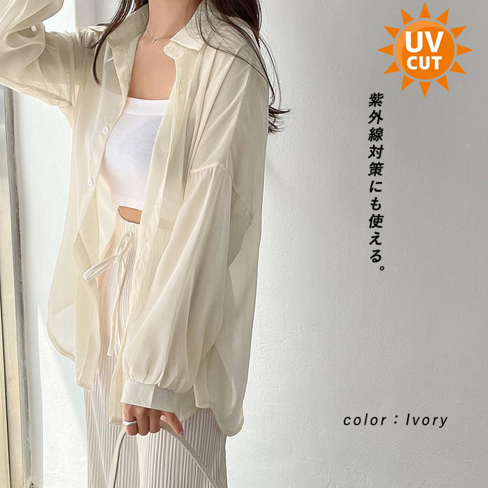 1393円 3点購入クーポンで! ブラウス シャツ レディース トップス 長袖 UVカット 春 夏 黒 白 おしゃれ かわいい オフィス シースルー シアー [郵1.5]^v178^