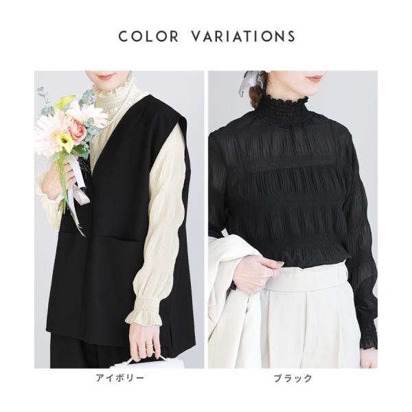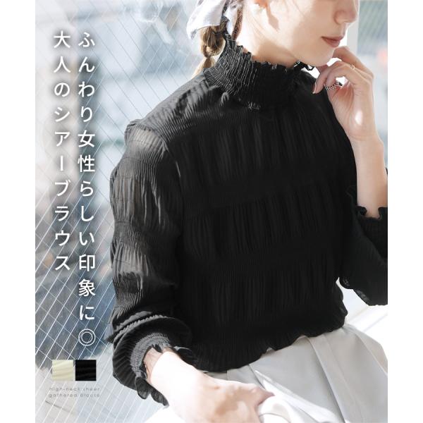 ハイネックシアーギャザーブラウス レディース きれいめ レイヤード 長袖 トップス オケージョン 春 ネコポス発送10 250906