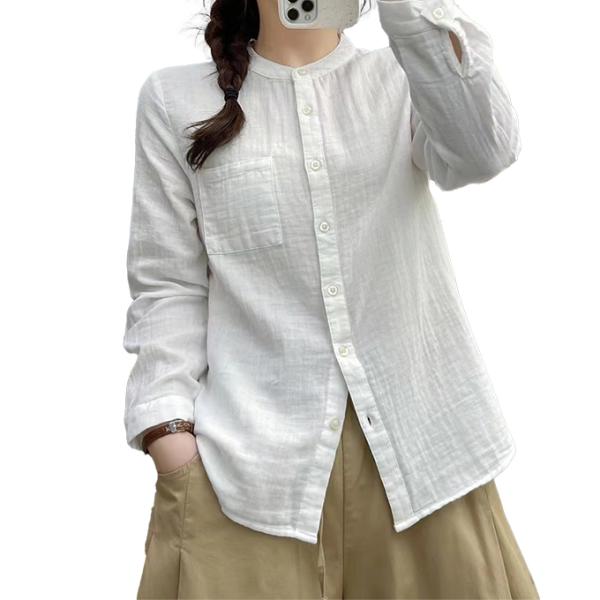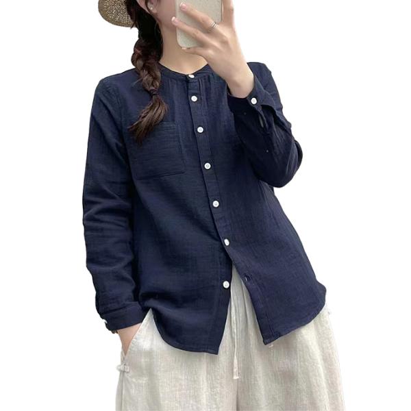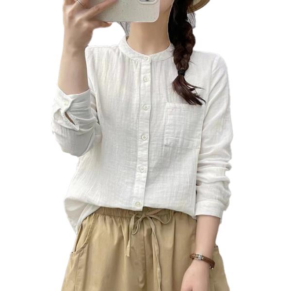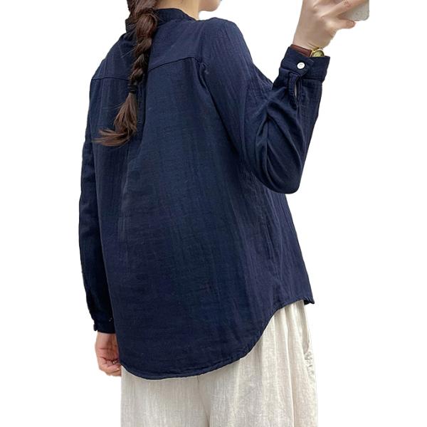 ダブルガーゼ シャツ レディース 春 夏 秋 冬 M L XL バンドカラー スタンドカラー 立襟 襟なし ノーカラー 綿100% 長袖