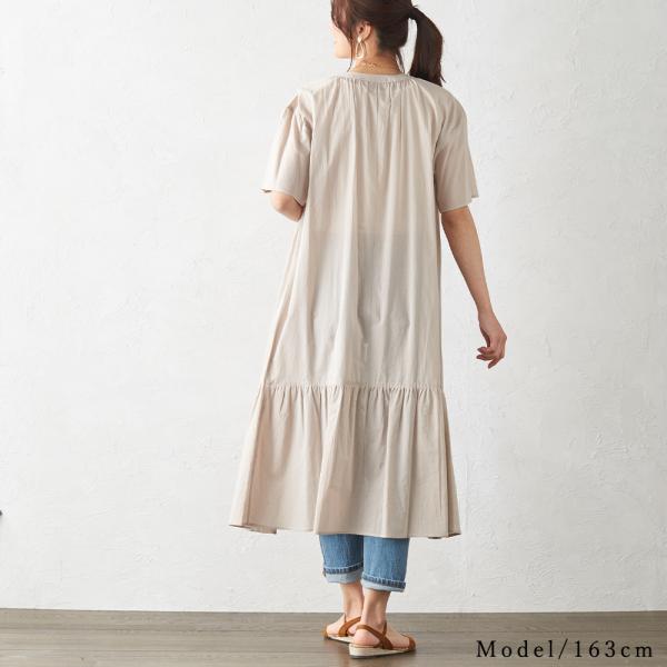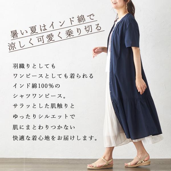 ティアードワンピース 半袖 夏 ティアードシャツ ロング丈 ロングワンピース シャツワンピース バンドカラー コットン 綿100