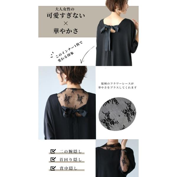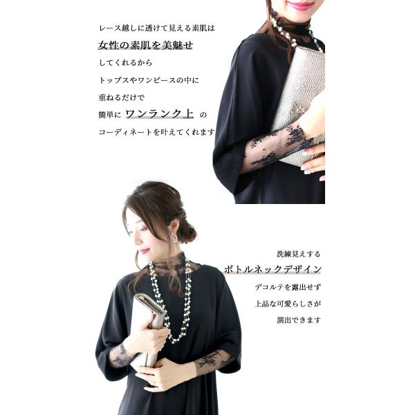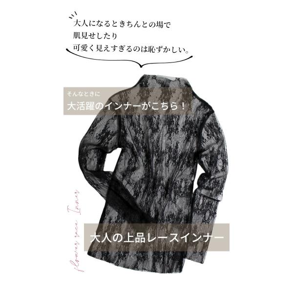 ブラウス トップス レディース 長袖 インナー 花柄 ブラック 黒 総レース オケージョン レースインナー 結婚式 パーティ 二次会