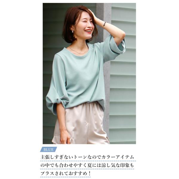 トップス レディース オフィスカジュアル バルーン袖 ブラック つぼみ袖 パフスリーブ ブラウス 上品 きれいめシンプル 七分袖 七分丈【S240805】