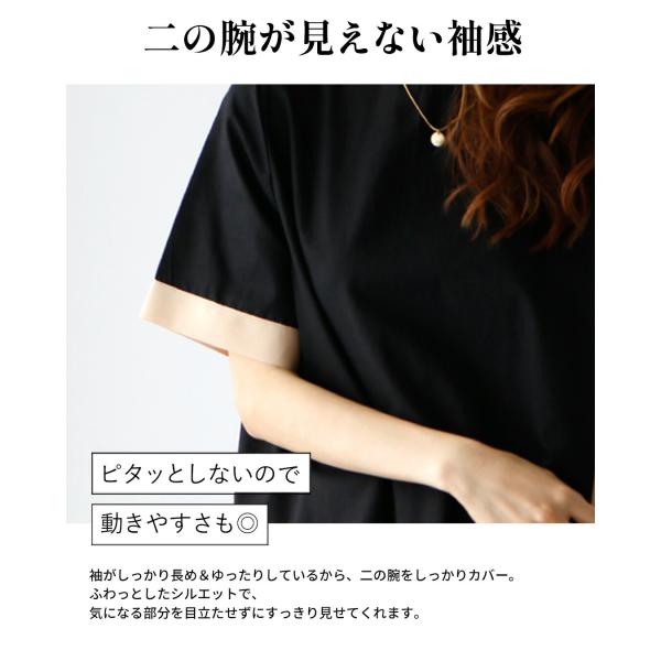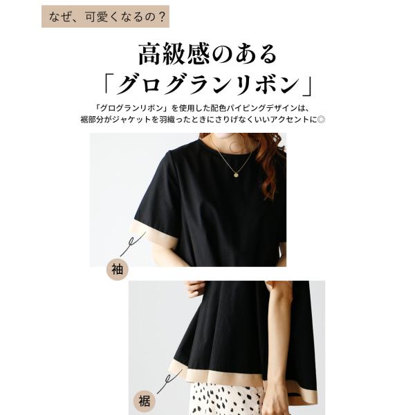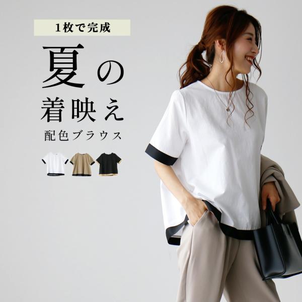 ブラウス トップス 半袖 レディース インナー 40代 配色 オフィスカジュアル 体系カバー パイピング デザイン インナー 送料無料