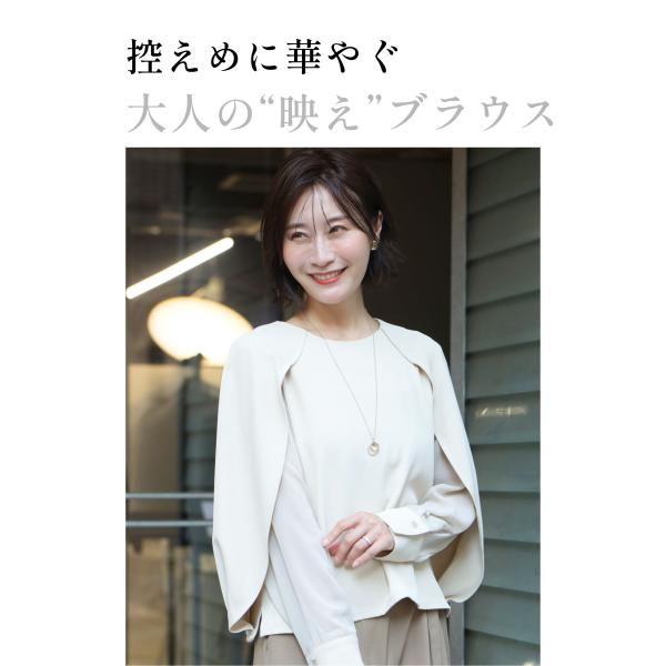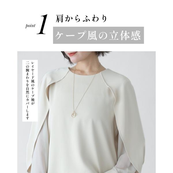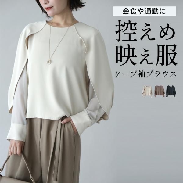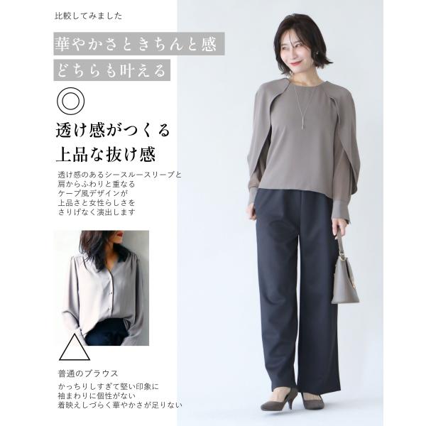 ケープ袖ブラウス シースルースリーブ ボレロ風 ブラウス 透け感 華やか きちんと感 ライトベージュ グレージュ ブラック beige gray black 肌色 灰色