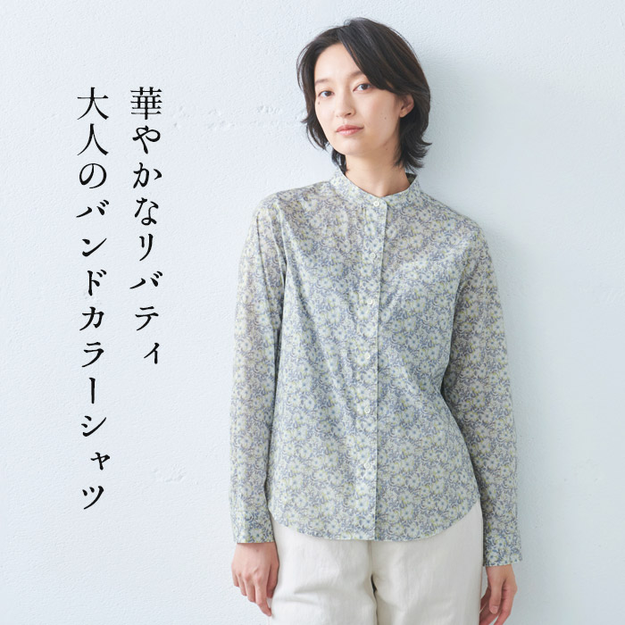 リバティ シャツ レディース 長袖 リバティプリント バンドカラーシャツ 日本製 シャツブラウス 花柄 LIBERTY